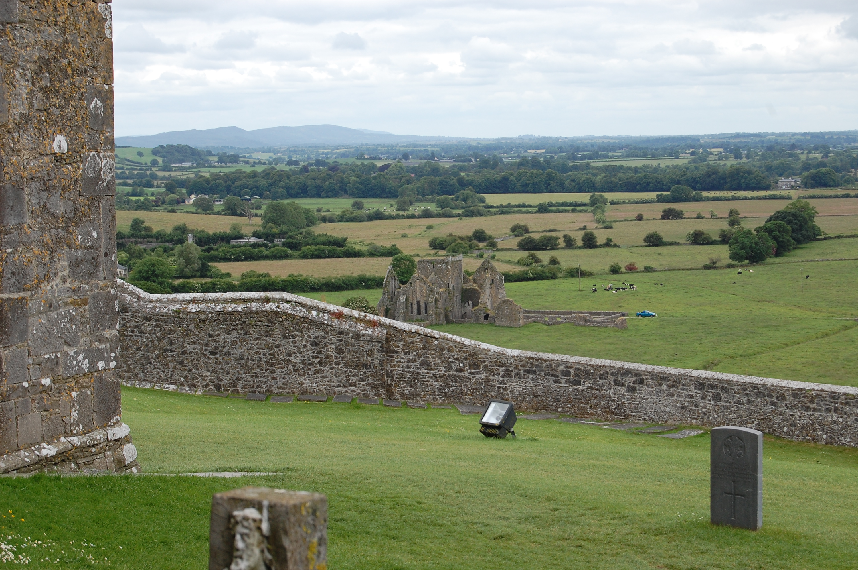 Built in the 12th Century, The Rock of Cashel stands on a hilltop overlooking the rolling green countryside of County Tipperary in south central Ireland. According to legend, the huge rock this castle was built upon originated in the Devil’s Bit, a mountain located 20 miles to the north. When St. Patrick banished Satan from a cave there, the rock, St. Patrick’s Rock, landed here.